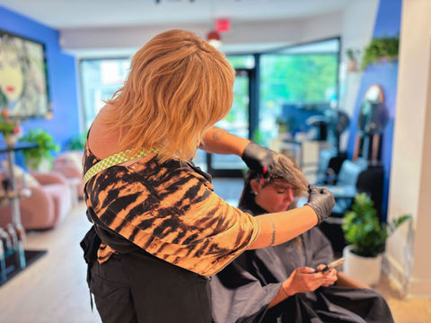 As an inclusive and affirming collective, we work to keep our space cozy and comfortable for all. We support other small businesses by carrying independent brands who are Eco and Allergy Friendly. We do not have set hours as our time in the salon is based on our scheduled appointments. When you arrive for your service, take a seat in the waiting area where we have drinks and snacks available. We look forward to providing you with an experience where you feel free to express yourself in the chair and everywhere.